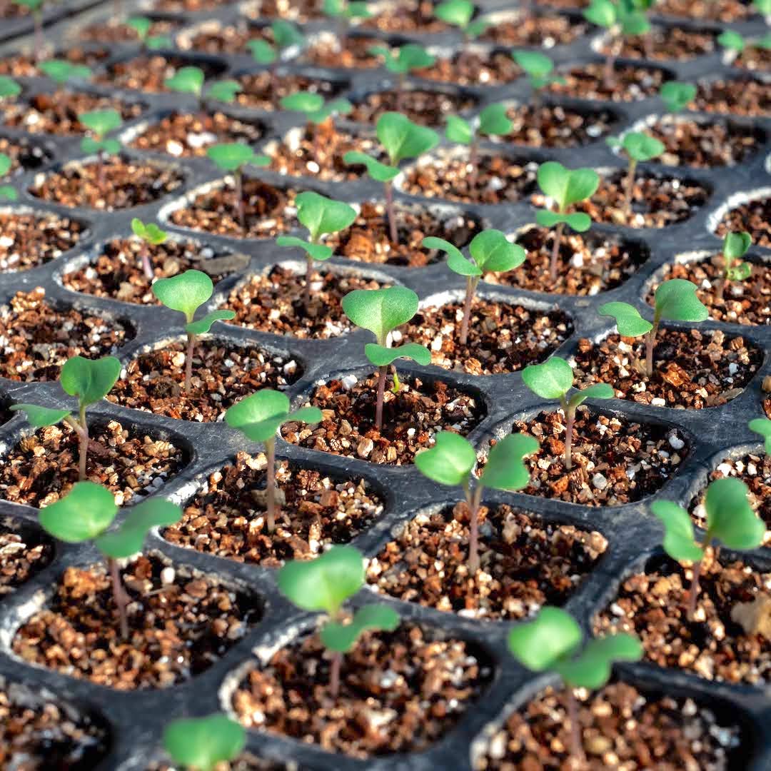 ケールの栽培はまず小さなポットに種をまき、苗を育ててから大きな畑へ植え付けます。