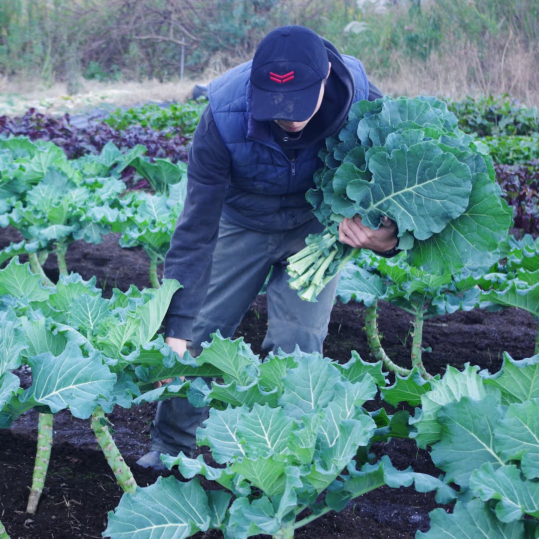 私たちの畑では上部の葉を数枚残し、下から健康な葉を厳選して収穫しています