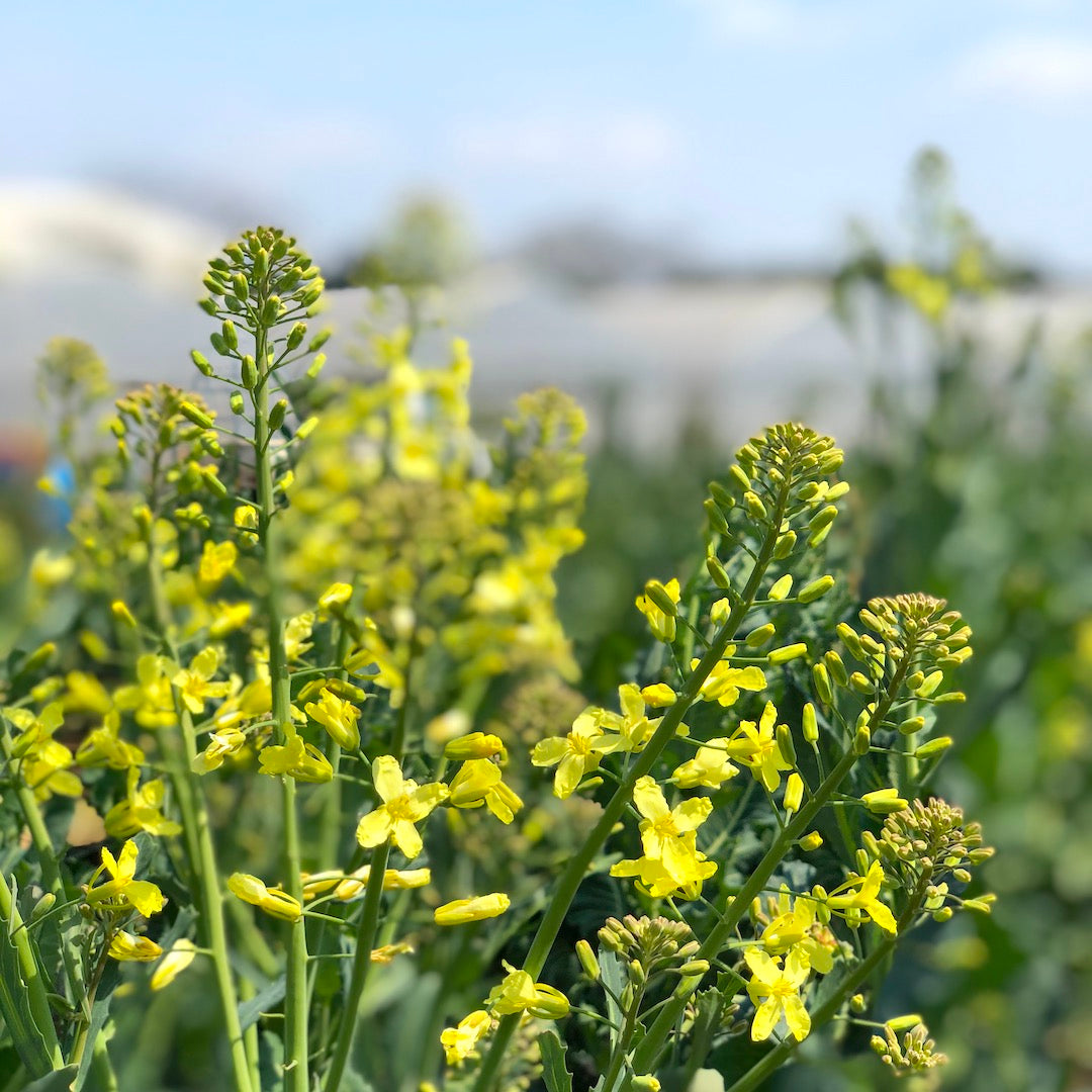 今日も畑では一足早い春を感じたケールたちが黄色い花をつけ始めています。